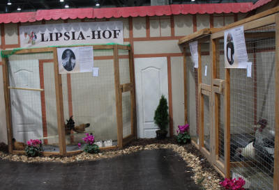 den Zwerg-Hühnern füllten viele Käfige. Stammschauen schlossen sich