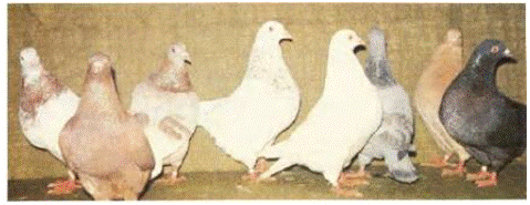 Groupe of Texans in different Colors. Source: World Pigeon Magazine