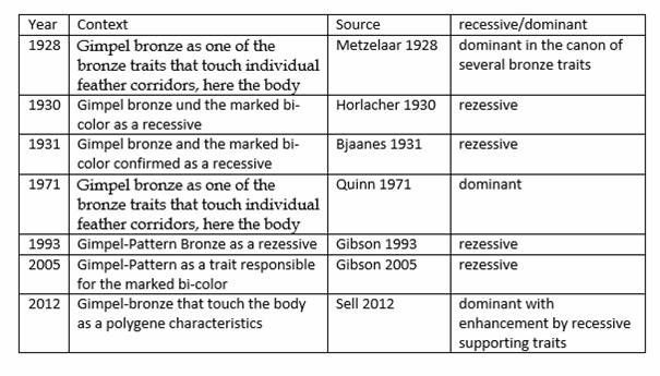 Sell, Axel (2015), Genetik der Taubenfärbungen,