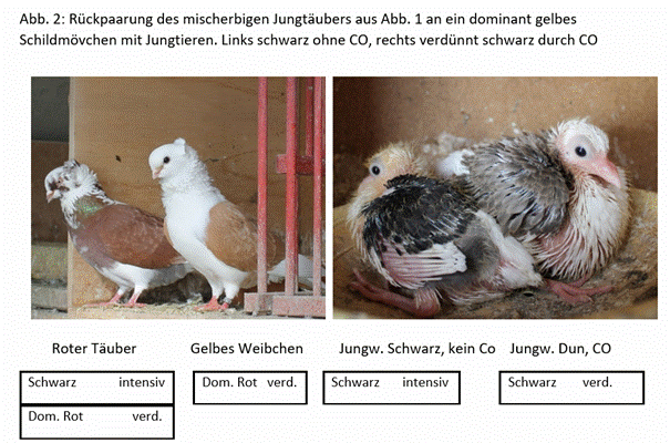 Rot und Verdünnung mischerbigen Täubers) auf die Verschmelzung