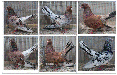 results in a sprinked plumage in many color varieties. Pigeons with