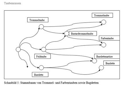Dokumentierte Umbrüche in der Entwicklung von Taubenrassen.