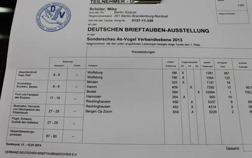 Brieftaubenzüchter e.V.) took place at 11 & 12 January 2014 in Dortmund.