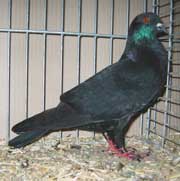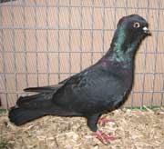 Ausgestellt wurden darüber hinaus die schon bekannten andalusierfarbigen Feldfarbentauben mit weißen Binden, Goldgimpel weißflügel gehämmert, Lockentauben rotfahl schildig mit Haube, Burmali Mövchen, Altholländische Tümmler andalusierfarbig, Budapester Hochflieger glattfüßig hellgestorcht und Regensburger Tümmler in dun und schwarz und die schon aus der AOC-Klasse früherer Jahre bekannten Deutschen Schnabelkuppigen Trommeltauben blauschimmel und blaufahlschimmel. Urig wirkten die Abu-Abse Wammentauben, die zur Sichtung standen, aus Nordsyrien stammen und nur im schwarzen Farbenschlag vorkommen. Typisch sind die dunklen Augen und vor allem die im Kopfbereich aufwärts gerichtete eigenartige Federstruktur. Wirkliche Neuzüchtungen wurden mit den Glanztauben, einfarbig schwarze schlichte Tauben mit viel Lack, glattköpfig oder mit Spitzkappe, gezeigt. |