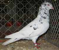 Gespannt konnte man auch auf die Porzellanfarbenen bei den Eistauben sein, nachdem die auf der letzten VDT in Köln gezeigten Tiere im nachhinein in der Kritik standen. Gezeigt wurden diesmal unter anderem Tiere völlig ohne Spiegel und mit einer zurückgedrängten Ausfärbung der Schwingen, aber auch Tiere, wie im Vorjahr auf der VDT, mit der Spiegelzeichnung der Orientalischen Mövchen in Schwingen und im Schwanz. Diese sehen apart aus, dass man sich fragt, warum sie wieder verschwinden sollten. Zumal es die Porzellanfarbenen, so wie sie in der Musterbeschreibung gewünscht werden, kleine Finkung auf den Schwingen, ein kleiner weißer Punkt auf den Schwanzfedern, zart rötlicher Übergang der weißen Schuppung in den schwarzen Saum, nie gegeben haben dürfte.