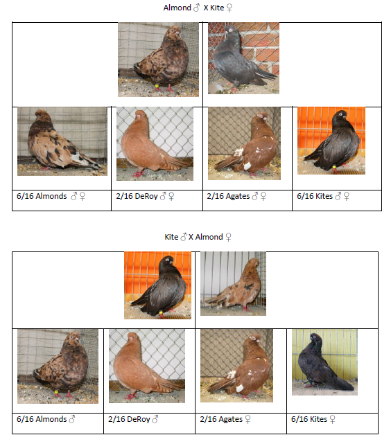 Almond hen mated with a Kite, Gold Dun or Agate cock will produce Almond