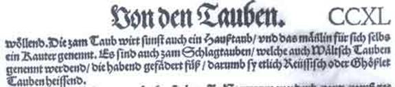 Die Englisch oder Reüſſisch Taub bei Gessner 1557 (ſ entspricht dem
