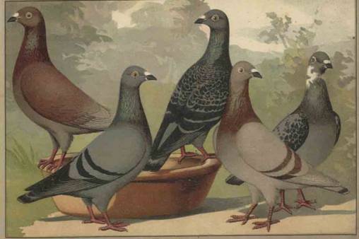 1911) findet sich in der Gruppe der Brieftauben auch eine Taube, die mit