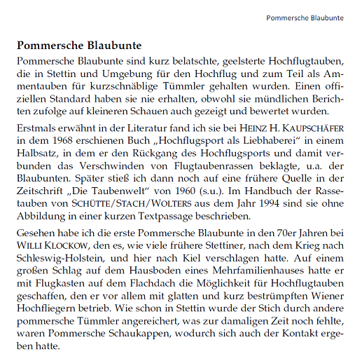 Auszug aus dem Buch 'Pommersche Taubenrassen', Achim 2010.