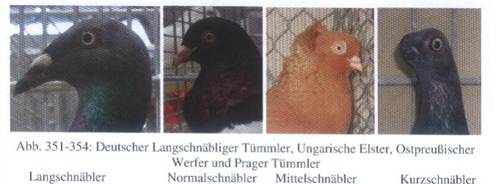 Schnabellänge, die über das normale Maß der Feldtaube hinausging, gab es