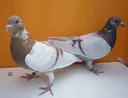 (Schnabellänge 24 mm) mit einer Wiener Flugtümmlertäubin (16 mm). Es wurde