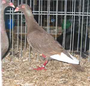 * gemessen an PTCA-Werten (ng/mg Federmasse) ** gemessen an AHP-Werten (ng/mg Federmasse) Quelle: s. Tabelle 1. Zu weiteren Ergebnissen siehe die Originalquelle. Braun und Dun unterscheiden sich noch in einigen anderen Punkten. Bei den Alttieren der Braunen ist dieses die Tendenz zum sogenannten falschen Perlauge; nicht umsonst verlangt man bei den braunfahlen Kingtauben Perlaugen. Bei Dunfarbenen ist dagegen das orangerote Auge wie bei den Schwarzen erreichbar. Kurz nach dem Schlupf ist die Unterscheidung noch einfacher. Dun ist als Verdünntfarbenschlag der Schwarzen kurzbedunt. Braun ist keine Verdünntfarbe und daher nach dem Schlupf normalbedunt. Untersucht wurden auch ein einfarbig rotes und ein einfarbiges gelbes Tier, wobei es sich genetisch um das rezessive Rot handelt, das bei Reinerbigkeit neben der Zeichnung auch die Grundfarbe überdeckt (Epistasie). Das rezessive Gelb stellt die Verdünntfarbe der Roten dar. Genetisch besitzen fast alle rezessiv Roten und Gelben eine schwarze Grundfarbe. Für die getesteten Tiere, die aus der eigenen Zucht stammten, kann das mit Sicherheit gesagt werden. Diese schwarze Grundfarbe wird durch den Erbfaktor in der chemischen Zusammensetzung drastisch verändert, was sich vor allem in der hohen Konzentration der roten Farbstoffe zeigt. Diese wird durch den Verdünnungsfaktor bei dem gelben Tier deutlich heruntergesetzt, die Reduzierung gilt auch für die (weit geringere) schwarze Farbstoffkonzentration. Angemerkt werden muß, daß diese Veränderung der chemischen Zusammensetzung sich nicht auf das Erbverhalten auswirkt. Ein rezessiv rotes Tier wird sich im Erbgang bei einer Paarung mit einem (genetisch) schwarzen, roten oder braunen Tier nicht anders verhalten als ein schwarzes Tier. Ein Unterschied tritt nur dann ein, wenn der Partner zufällig latent das rezessive Gen für Rot besitzt. |