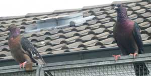 Täubin mit ihrem kupferfarbenen Bruder (rechtes Bild). Jungtiere aus spalterbigem
