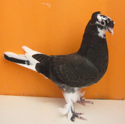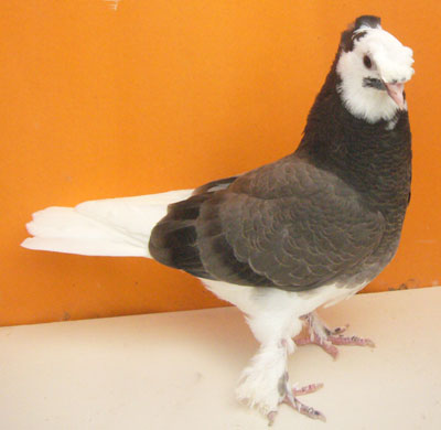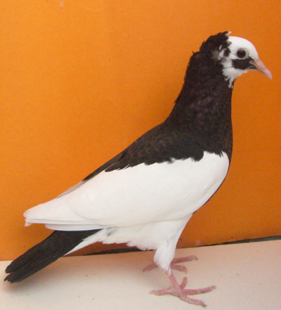 of an Uzbek Tumbler cock with a Spread Ash Pomeranian Eye Crested