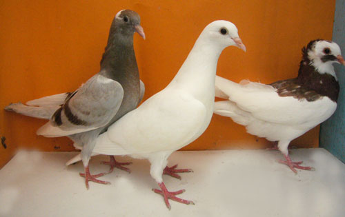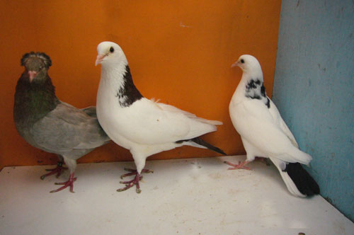 und roter Nackenflecktümmler mit aschfahler Pommerschen Schaukappe und