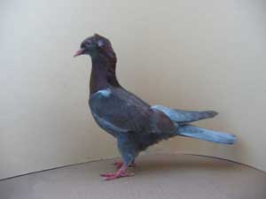 0,1 Blaugehämmert im Jugendgefieder 0,1 Blaugehämmert im Altgefieder 1,0 Rotfahlgehämmert Platin mit Binden und Platingehämmert: Die auf den Ausstellungen gezeigten Platin besitzen den Farbausbreitungsfaktor. Wenn dieser durch Paarungen mit Blaubindigen verloren geht, dann können in der Folge bindige und gehämmerte Platin auftreten, die eine duffe bläuliche Färbung mit bronze-rötlichen Binden bzw. mit einer entsprechenden Hämmerung zeigen. Die Schwanzbinde ist wie bei den gezeichneten Indigo, rezessiv Opal und Reduced ausgebleicht. Ein Züchter, dem ich blaue Pommersche Schaukappen abgegeben hatte, erzählte mir, dass er aus zwei Blauen einen Rotfahlen gezogen habe. Genetisch wäre das ein Widerspruch zu den bekannten Vererbungsgesetzen. Die Erklärung liegt nicht in einem Versagen der Erbgesetze, sondern in einer Verwechselung eines Platinbindigen mit einem Rotfahlen. 1,0 Platin gehämmert im Jugendgefieder 1,0 Platin gehämmert im Altgefieder