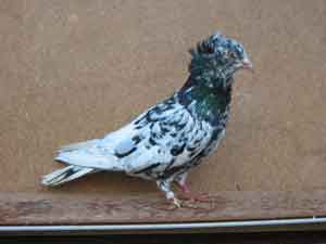 Andalusier 0,1 Schwarzsprenkel: Schwarzsprenkel sind durch die Paarung Dänischer Braustipper mit schwarzen Schaukappen entstanden. Die Grundfarbe ist weiß, darauf sind möglichst regelmäßig schwarze Sprenkel zu zeigen. Wie bei anderen Rassen auch sind die Weibchen weniger stark gesprenkelt, und die Sprenkelung nimmt von Jahr zu Jahr zu. Da die Sprenkel das Almond-Gen (vielleicht besser Stipper-Gen, da diese Bezeichnung die Wirkung deutlicher beschreibt) besitzen, lassen sie sich nicht reinerbig ziehen. Zwei Träger des Almond- bzw. Stippergens dürfen unter Tierschutzgesichtspunkten nicht verpaart werden, da daraus ein Viertel nicht vitaler Täuber mit einer weißen Gefiederfärbung fallen wird. Sprenkel werden daher mit Schwarzen verpaart. Durch die Verpaarung mit Blau können auch „Blausprenkel" entstehen. Ein solcher Täuber ist auf S. 20 im Spezialheft über Almond in der amerikanischen Zeitschrift „Pigeon Debut, Februar 2002, abgebildet. Die genetischen Grundlagen entsprechen weitgehend denen der Dänischen Graustipper und können auf dieser Homepage bei den Dänischen Tümmlern nachgelesen werden. Schwarzsprenkel 1,0 |