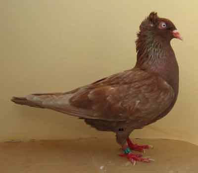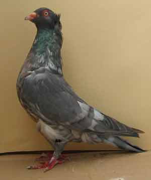 Rezessiv rote Platin: Auf Kreuzungen in den 80er Jahren zurückgehend, fallen gelegentlich rezessiv Rote aus Schwarzen. Durch die relativ geringe Zuchtbasis der einzelnen Farbenschläge bedingt kommt es zu häufigen Kreuzungen zwischen den einzelnen Farbenschlägen, und damit auch zwischen Platin und Schwarz. Durch diese Kreuzungen ist offenbar der Erbfaktor für rezessiv Rot auch in die Platinfarbenen gelangt, denn in den Jahren 2000 und 2001 fielen aus platinfarbenen Zuchtpaaren mehrere rezessiv rote Platin. Diese sind anfangs einfarbig Rot, wenn auch nicht besonders intensiv, nach der Mauser wird vor allem das Flügelschild platingrau durchsetzt. 0,1 Rezessiv rote Platin Die Erzüchtung der farbigen Pommerschen Schaukappen ist im Buch „Tauben. Züchten mit System" nachzulesen und wurde mit einer kurzen Fotomontage auch in einem SV-Journal abgedruckt. |