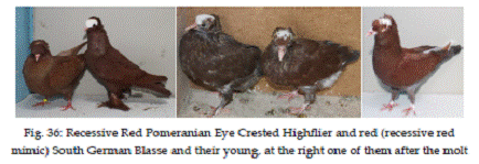 Abb. 36: Kreuzung eines rezessiv roten Pommerschen Schaukappentäubers mit