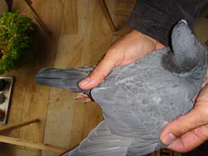 Zucht des Verfassers ähnlich auch bei einigen Rubella-Brieftaubenweibchen