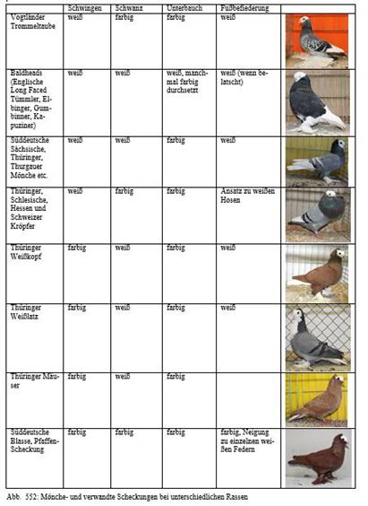 Deutschen und Schweizer Farbentauben. Die Bezeichnung Mönch wurde