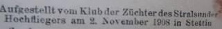 Club of Breeders of the Stralsund Highflyer on 2 November 1908 in