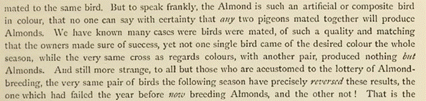 seinem Buch ‚Color Breeding in Pigeons‘ von 1926. Abgedruckt wird