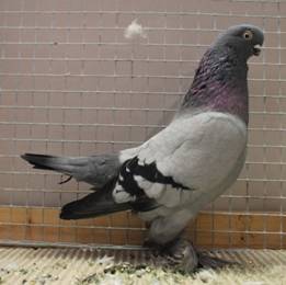 grizzle Romagnoli, German Long Beaked Tumbler blue white tail white