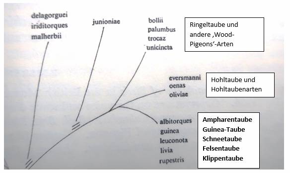 der Guineataube und der Klippentaube angesehen. Dieser Ast wird hier