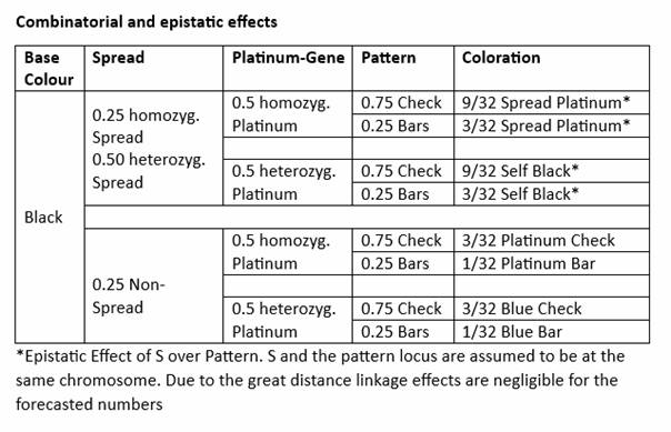 dominant color spread factor (S), at least heterozygous. Only Spread