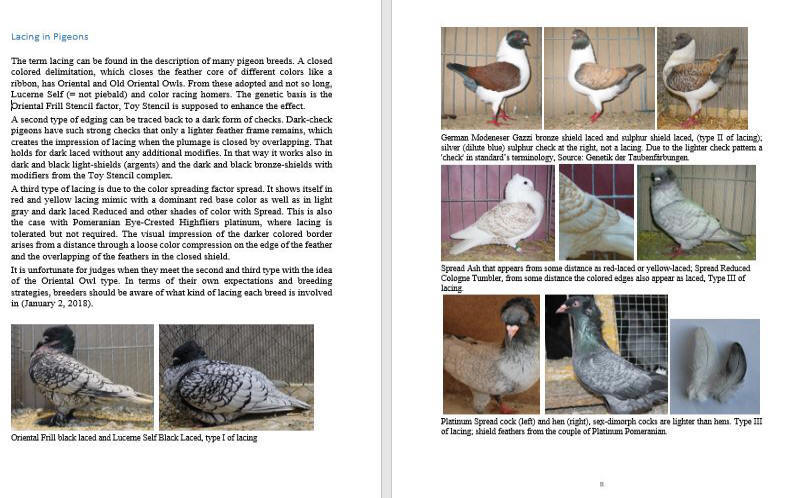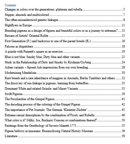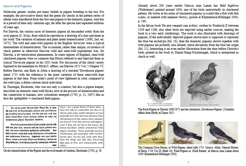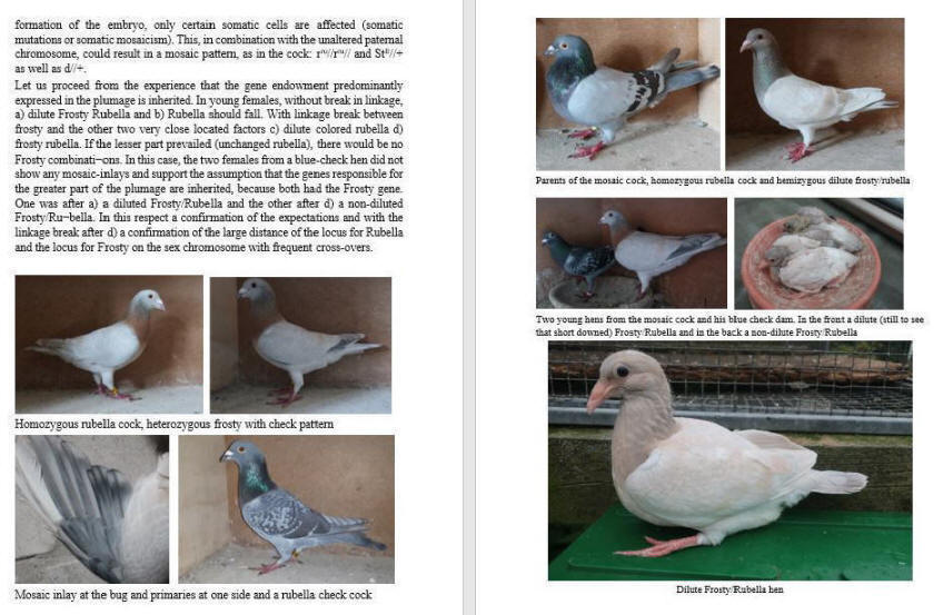 The now published parts conclude a series of short essays on facts and fakes in pigeon breeding. Questions that have been controversially discussed in recent years were taken up. It is about heredity, about the importance of genetic insight for standards, about historical roots of pigeon breeds and about recent molecular genetic investigations of individual traits. It is not only in the latter case that possible misunderstandings and pitfalls in research approaches are highlighted. The brief look at known and newly discovered inheritance mechanisms can be helpful in explaining surprising results in one's own breeding. It can mean the start of systematic breeding planning.  The scheme of sex-linked inheritance, for example, was first discovered in butterflies. Shortly thereafter it became the key to explaining inheritance in base colours, in dilution, in stippers and auto-sexing. Correlation and linkage analyses can sharpen the eye for errors in experimental design in genetic analyses. The identification of previously underestimated interactions between modifiers should at least urge caution when interpreting the results of test pairings.