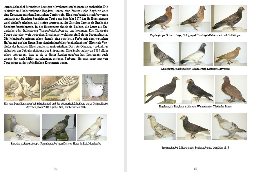 Ausstellungswesen, um historische Wurzeln von Taubenrassen und um