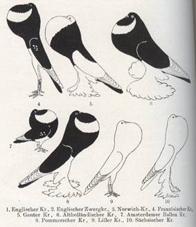 Unter 1 unten links der Englische Kröpfer, unter 5 der Genter, unter