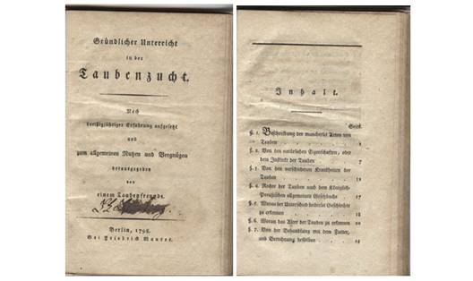 Taubenbuch‘ (Abb. 2). Die zweite 1798 aus Berlin, ‘Gründlicher