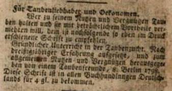 2: „Für Taubenliebhaber und Oekonomen: Wer zu seinem Nutzen und