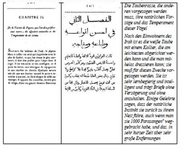 Brieftauben des Iraks, französisch und arabisch 1805 und freie
